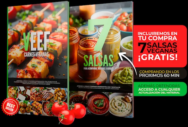 Si compras dentro de los próximos 60 minutos, recibirás mi Guía "VEEF Carnes Veganas" + el BONO "7 Salsas Veganas" valorados en + de $35 USD con un precio especial de solo U$9,74